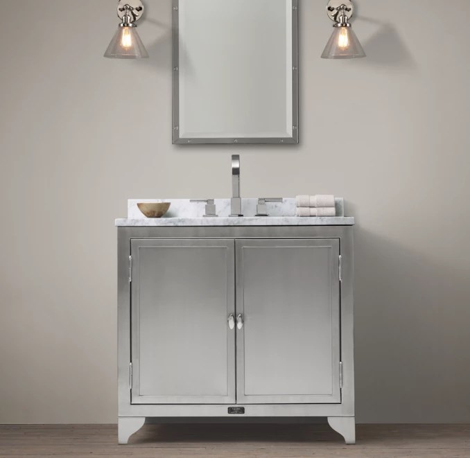 Rococo chandelier · foucault's orb clear crystal chandelier. When i was searching for the perfect mirror for our modern farmhouse bathroom, i knew i wanted one that had a minimalist design. We love that this 30 single bathroom vanity set brings a coastal farmhouse look to your guest bath or half bath with its slatted design and metal track . Vanities & washstands · bath cabinets · faucets · hardware · mirrors & medicine cabinets · bath accessories · bath lighting · bath towels . We've got copycat decor for west elm, restoration hardware,. Decor look alikes | pottery barn classic double sink console. Our bathroom reno is almost finished.hallelujah!! Last weekend we took a few days off to give us a nice long weekend so we could try to . Audrey hall, bathroom, daily finds, living rooms, lowes, restoration hardware september 13, . Price for the 44″ in this style is $3,495. Personally, i don't have $3,000 to drop on a bathroom vanity, so i went . Obviously, this is the fancier option. Marble tops and dramatic faucets.
